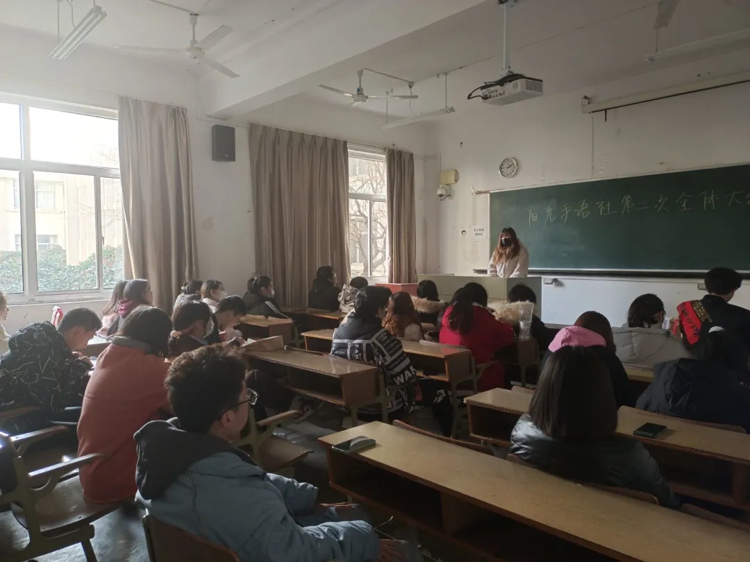 2021年12月12日下午2时,阳光手语社第二次全体大会在通灌校区明德楼217顺利召开。此次全体大会由社长冯嘉梁主持。