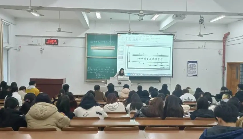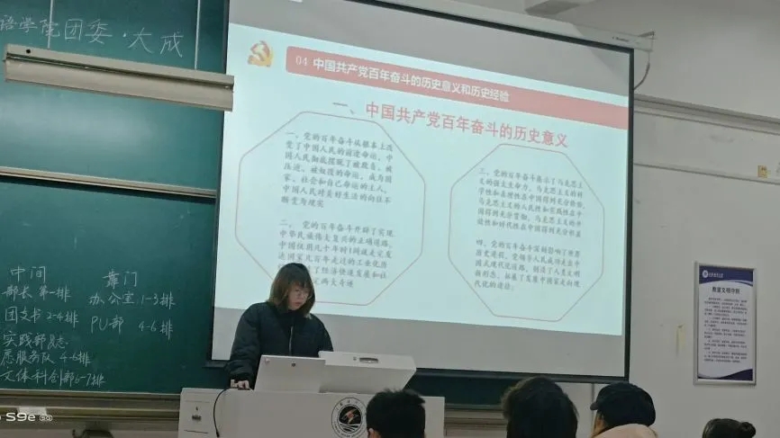 紧接着,苏秦进行会议总结,提出“干”“学”“实”的三字建议,希望各部门能够认真负责并将工作落到实处。最后,仇雯倩带领大家进行党的十九届六中全会学习,强调了“三个必要性”,并邀请了部分干事分享自己的学生干部经验。至此,本次会议圆满结束。