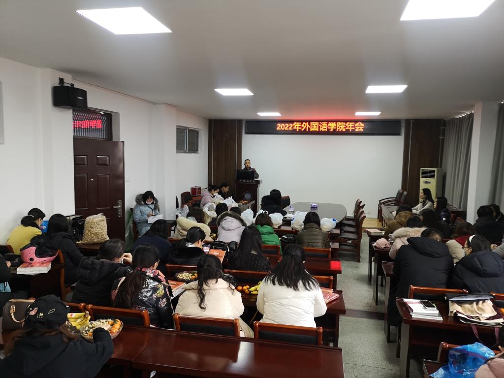 继往开来迎新年,凝心聚力逐梦想。2022年1月12日下午,外国语学院“凝心聚力展新貌,昂首阔步谱新篇”2022年教职工迎新春年会活动在学院会议室及各系室欢快、祥和、有序的进行。