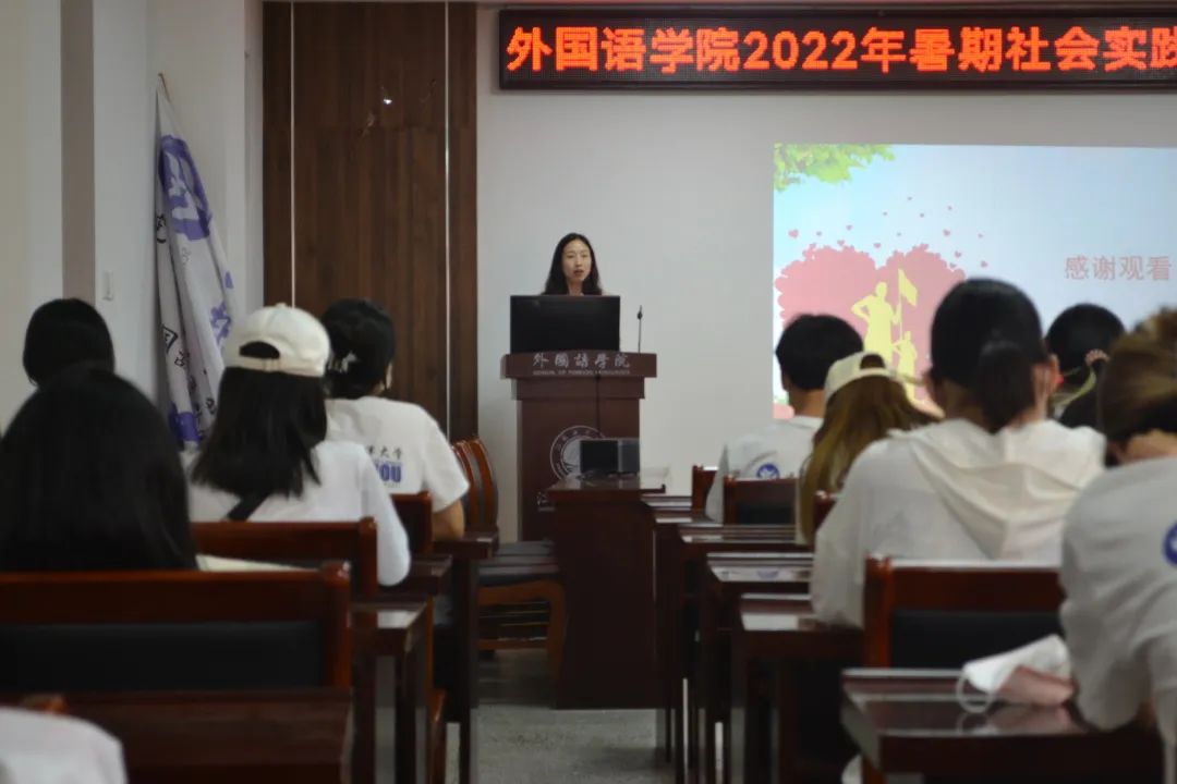 6月16日下午6时整,外国语学院2022年暑期社会实践分享培训会于苍梧校区文渊269会议室顺利开展。外国语学院党委副书记陆文前、团委副书记王熙、辅导员匡冬青出席本次活动,“博爱益行,骑迹港城”、“一带译路,语你同行”、“探究徐福文化,拓展对外交流”三支暑期社会实践团队全体实践成员参加分享培训会。