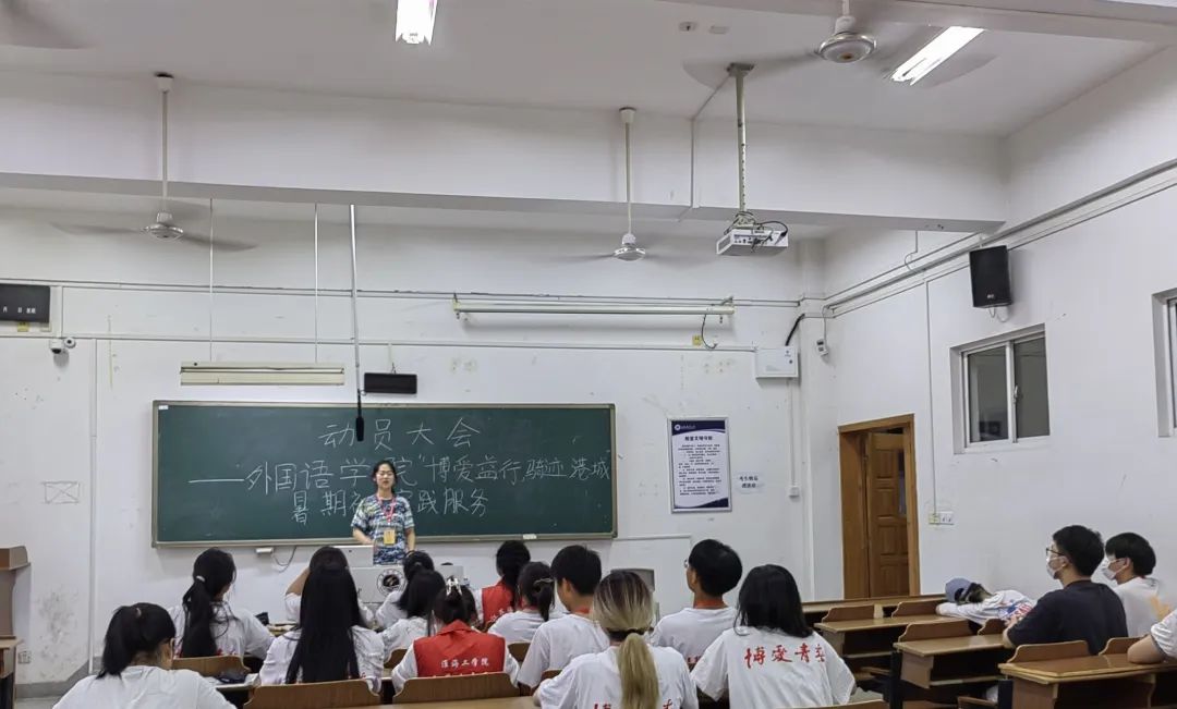 6月20日下午,江苏海洋大学外国语学院“博爱益行,骑迹港城”暑期社会实践服务队于苍梧校区文通楼109开展动员大会。