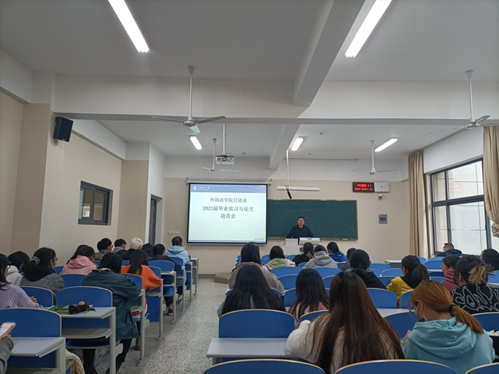 为保证毕业论文的质量水平,有效推进开展毕业论文相关工作,我院日语系于2022年10月7日下午两点在文华楼108室召开2019级日语专业毕业论文动员大会。会议由我院日语系主任张勇老师主持,全体2019级日语专业学生参加此次会议。