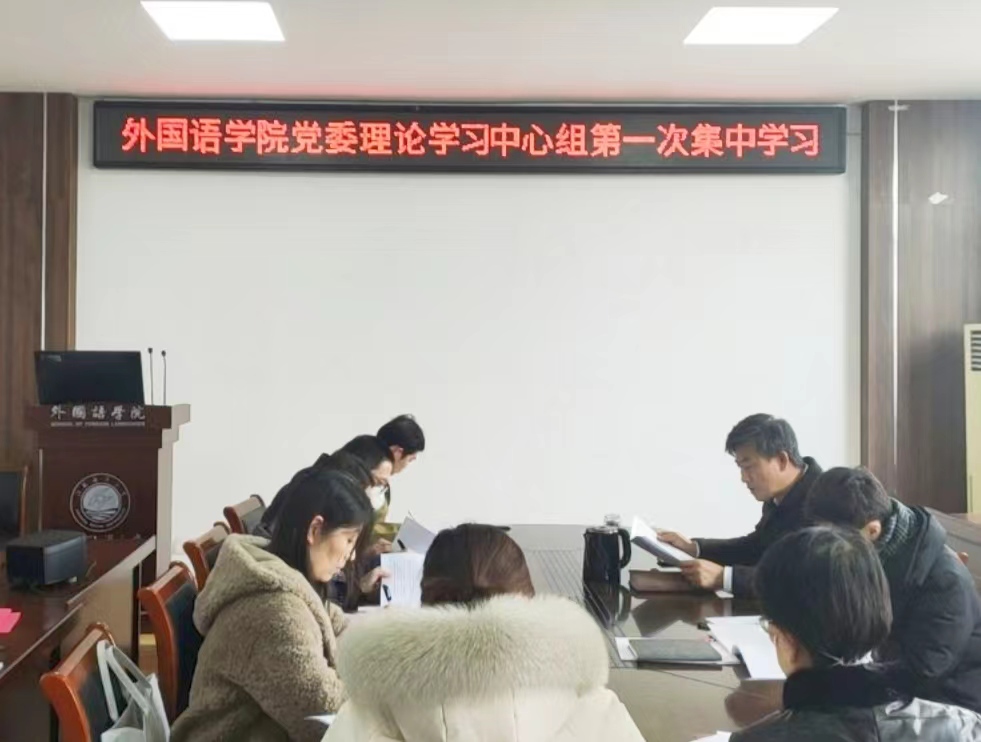 2月24日下午,外国语学院党委理论学习中心组开展本年度第一次集中学习,学院全体班子成员和各党支部书记参加学习,党委书记田德勇主持会议。