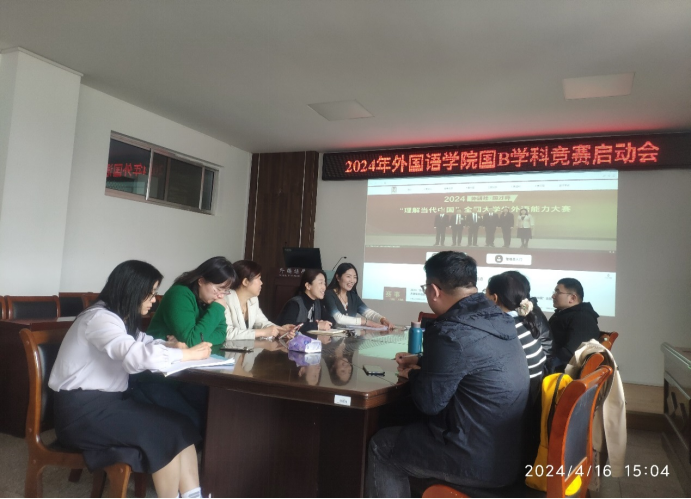 4月16日下午15点,在文渊楼269会议室召开了2024年外国语学院国B学科竞赛启动会。外国语学院国B类学科竞赛负责人李传玲、周黎、王晓红、李平以及英、日、俄、朝鲜语的系主任及负责人刘娟、张勇、朴正实和靳俊杰等老师参加了会议。会议由副院长严红花主持。