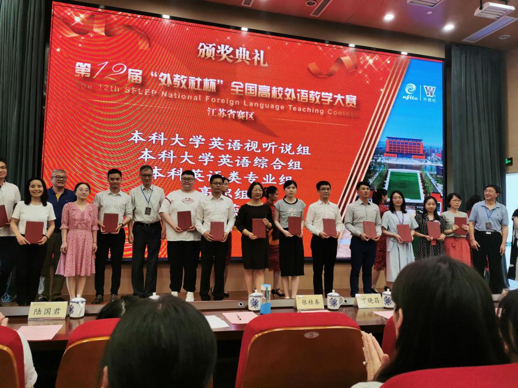 第十二届外教社杯全国高校外语教学大赛江苏赛区决赛于618日至20日在常州工学院举行,比赛由授课和说课两个环节构成。来自全省多所高校的48支参赛队伍汇聚常州,分成本科大学英语综合组、本科大学英语视听说组、本科英语专业组和高职组四个组别进行了激烈较量。