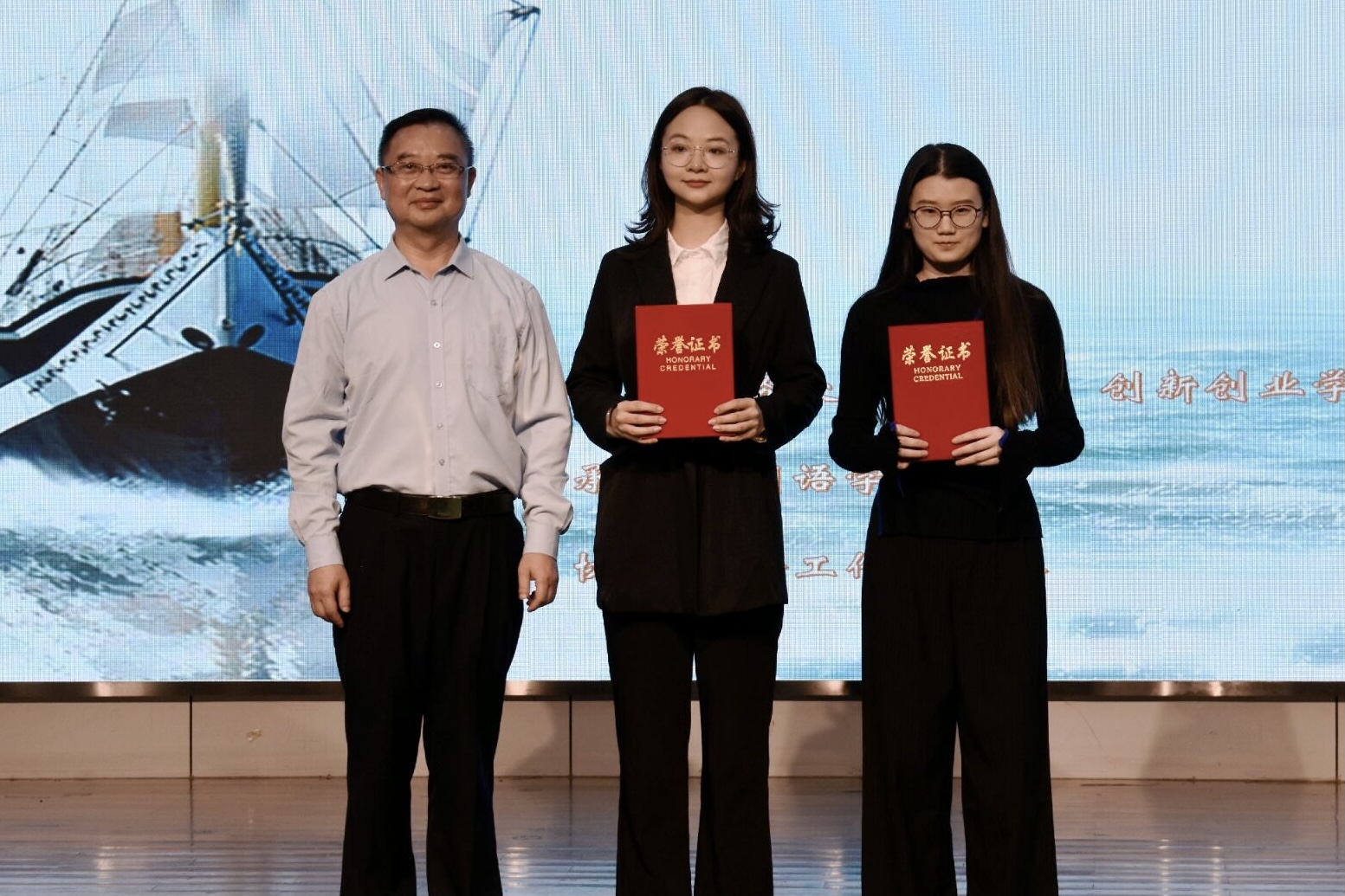 副校长严云洋,教务处副处长祝春水,外国语学院王波、孙军等领导及评委老师,分别为一、二、三等奖获奖选手颁发了荣誉证书。