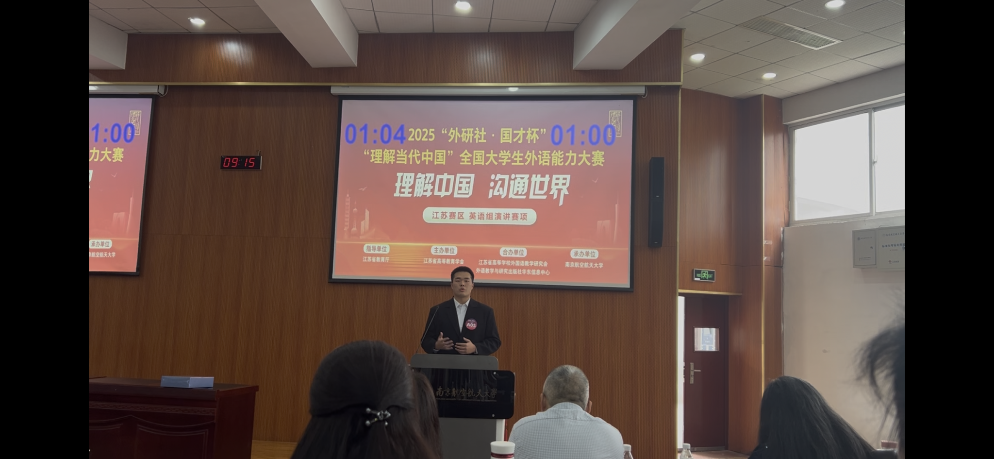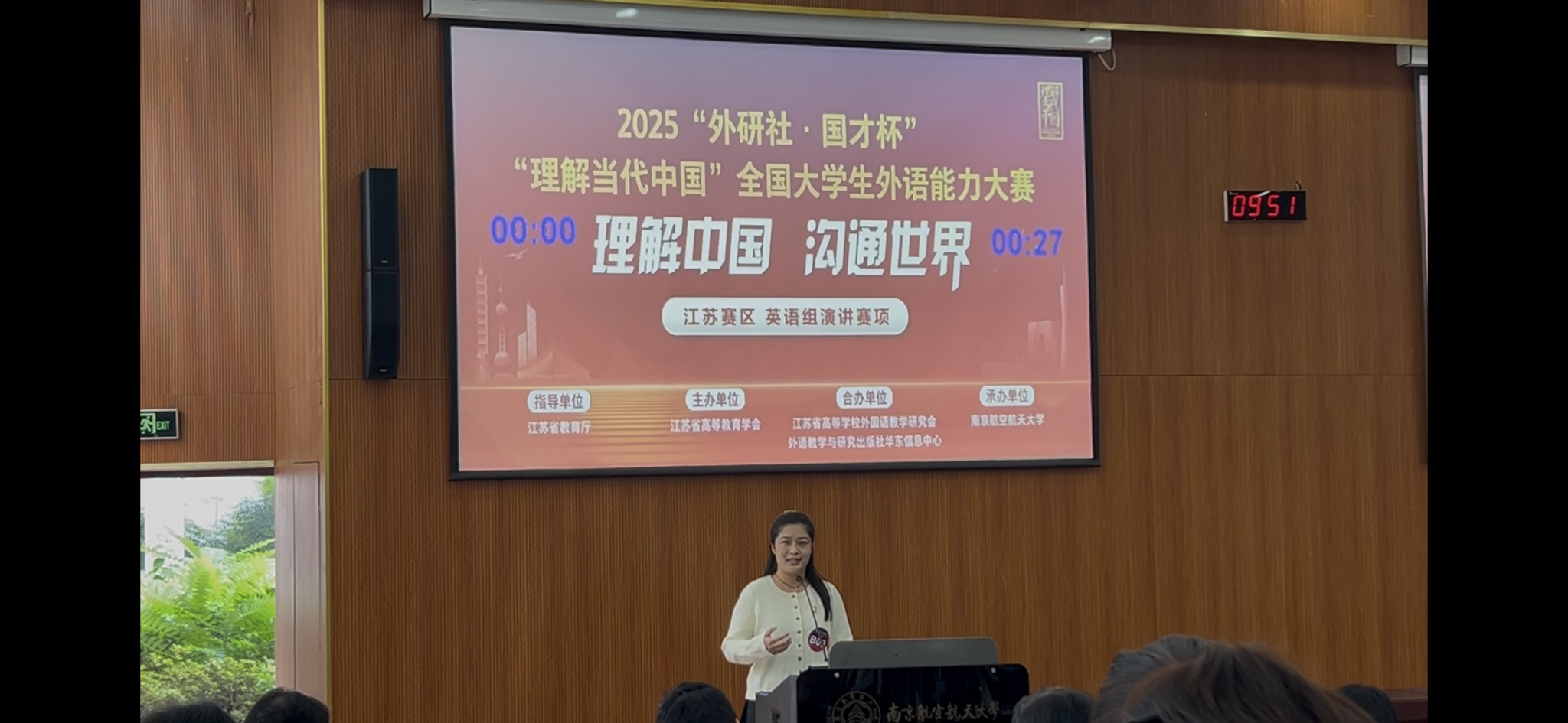 11月1 日至 2日,2025“外研社·国才杯”“理解当代中国”全国大学生外语能力大赛(江苏赛区)演讲比赛在南京航空航天大学举行。外国语学院英语专业学生陆菁菁、王嘉乐分别荣获省赛三等奖。
