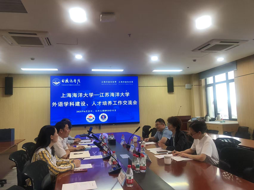 为深化外国语学院学科建设与人才培养改革,学习海洋类院校特色办学经验,6 月 23 日,我院院长赵晶辉率 3 人调研组前往上海海洋大学外国语学院开展专题考察交流。此次活动围绕“外语+海洋”特色学科发展、人才培养模式创新等核心议题,通过座谈研讨、实地走访等形式展开深度交流,为学院高质量发展开拓新思路。
