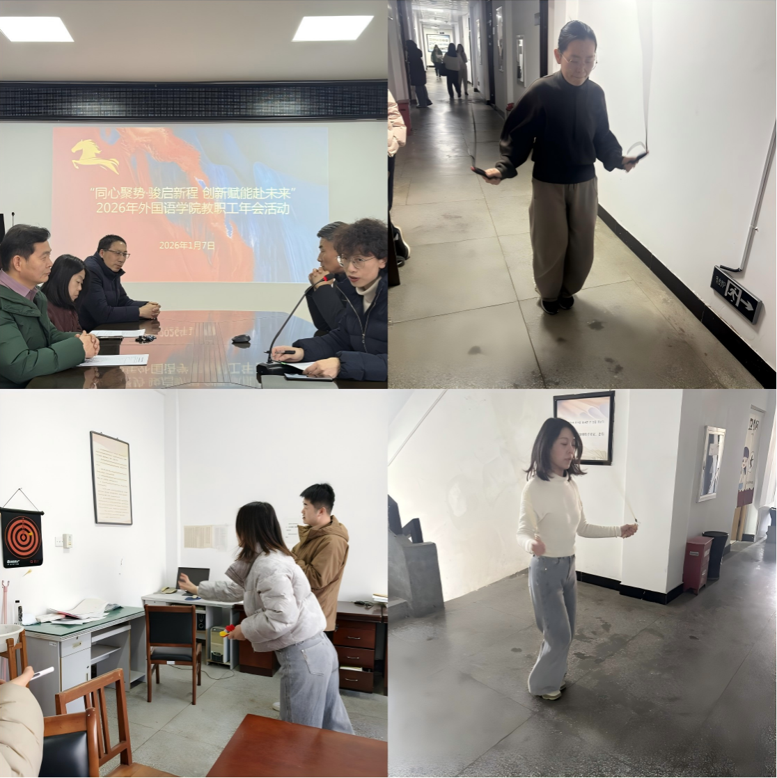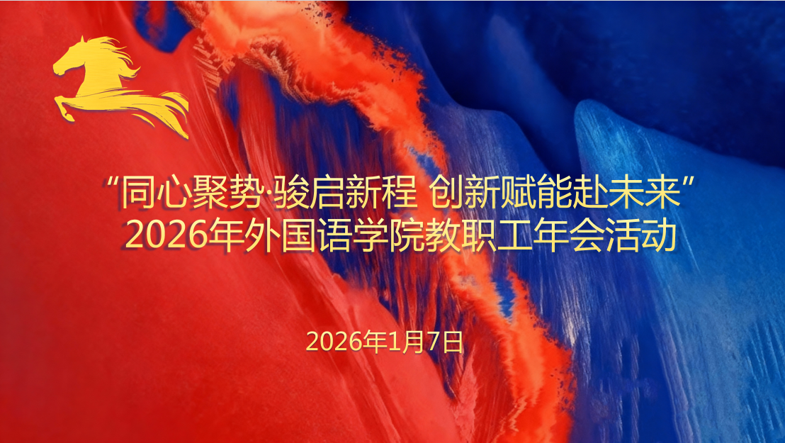 岁序更替,华章日新。为丰富教职工文化生活,增强学院凝聚力,2026年1月7日下午,外国语学院分工会在文渊楼269会议室举办了主题为“同心聚势骏启新程创新赋能赴未来”的2026年教职工年会。外国语学院全体教职工欢聚一堂,共迎新春,共话未来。
