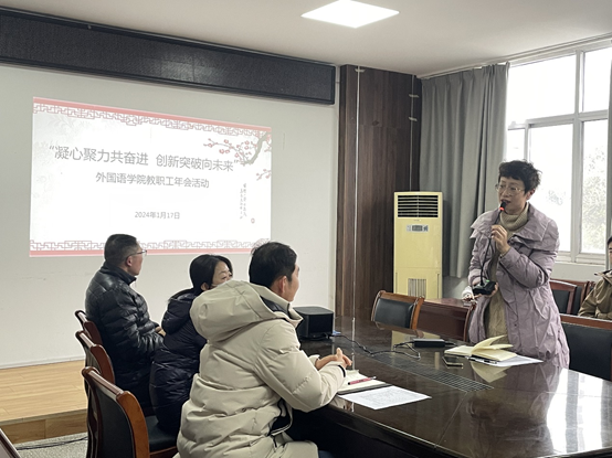 玉兔欢腾辞旧岁,龙腾盛世启新年。2024年1月17日下午,外国语学院在学院会议室及各系室隆重举办“凝心聚力共奋进,创新突破向未来”2024年教职工迎新春年会活动,全体教职工齐聚一堂,共同奏响新年的激情序曲。