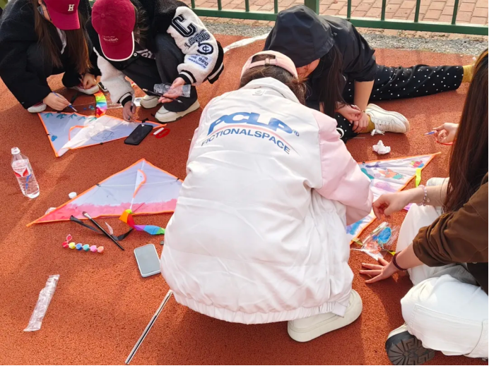 活动现场,大家使用各色颜料,将自己的想象力融入其中进行创意的制作:有的同学画了自己喜欢的卡通人物,有的画了自己最喜欢的食物,还有的运用扎染技术展现了独一无二的创意……整个活动不仅为学生们提供了一个展示自我想象力的平台,也增强了团队合作和沟通能力。至此,DIY风筝活动圆满结束。