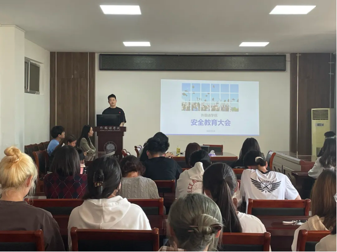 为加强学生的安全防范意识,外国语学院于5月25日下午5时召开了外国语学院安全教育大会,此次会议由李靖老师主讲,外国语学院全体宿舍长和心理委员参加。