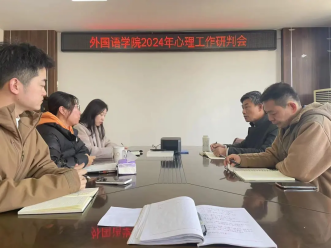 为了更好地帮助学生适应新学期,对学生的心理状况做好研判和把握,外国语学院于3月12日在文渊楼269召开学生心理工作研判会,会议由院党委书记田德勇主持,院党委副书记陆文前和全体辅导员参加。