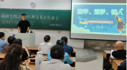 为加强家校双方的相互了解,凝聚家校育人合力,9月6日下午2时30分,江苏海洋大学外国语学院于至善楼102开展2024级新生家长见面会。会议由2024级外国语学院辅导员匡冬青主持,院团委书记王熙和辅导员李靖出席,2024级新生家长参加。