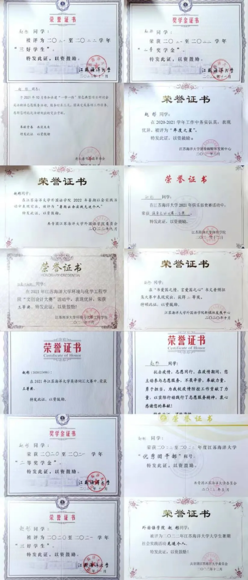 学习方面,赵彤严格要求自己,脚踏实地,能够平衡好工作和学习,多次获得“三好学生”和校奖学金等荣誉,有目标、有计划,能够总结出适合自己的学习方法。