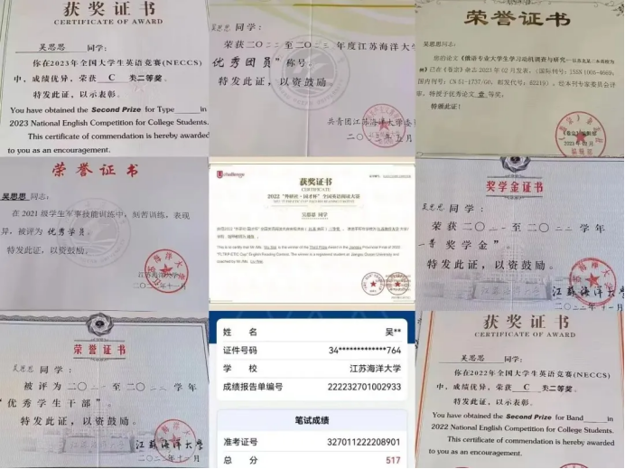 吴思思,来自江苏南通,现任俄语1211班班长,是一名中共预备党员。2023年获得中俄政府奖学金,得到国家公派留学资格,曾连续两年获得全国大学生英语竞赛国家二等奖,校一等奖学金,被评为校“三好学生”“优秀学生干部”“优秀志愿者”等。