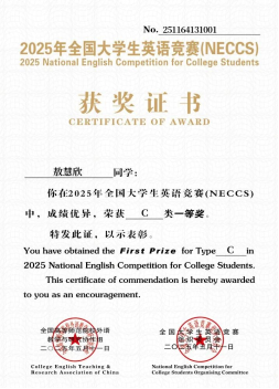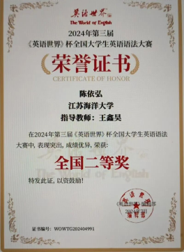 英语世界杯语法大赛二等奖、翻译大赛三等奖