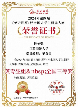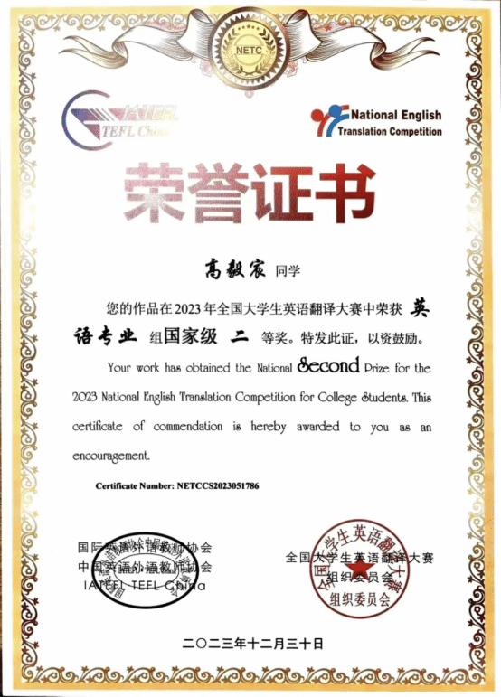 全国大学生英语翻译大赛英语专业国家级二等奖