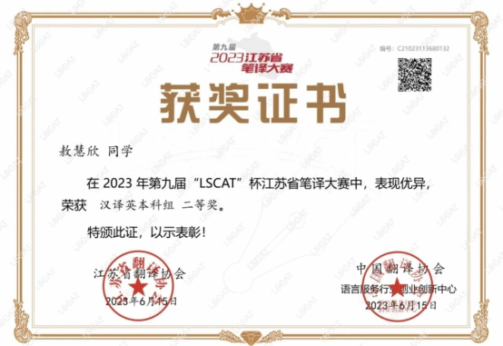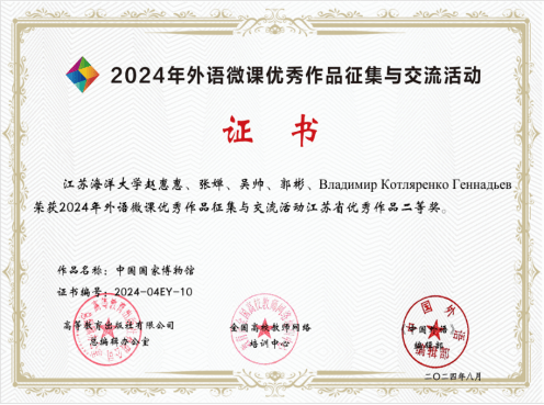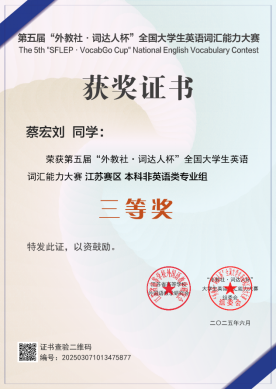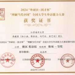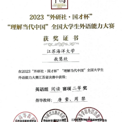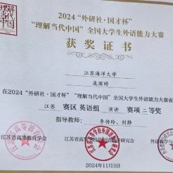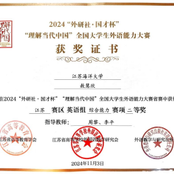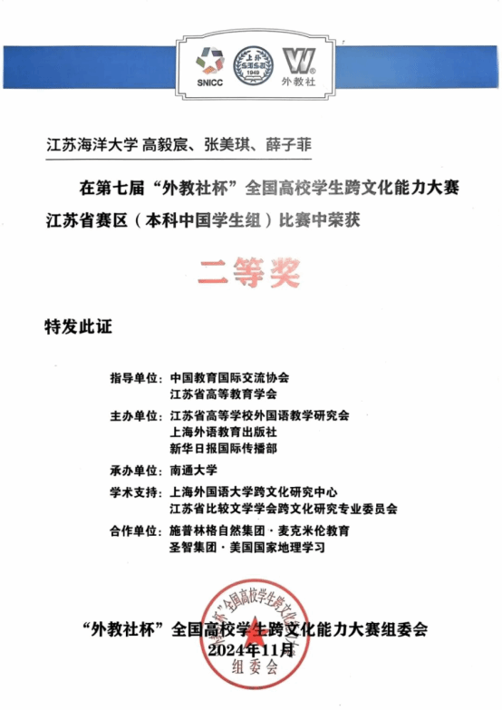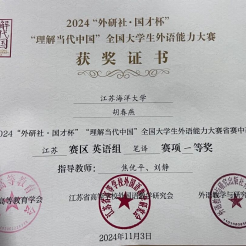 外教社杯全国高校学生跨文化能力大赛江苏省二等奖