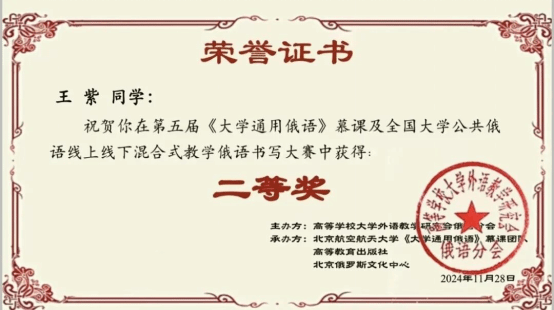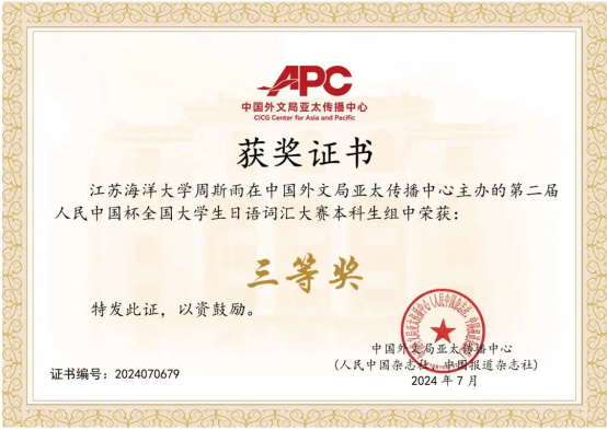 人民中国杯全国大学生日语词汇大赛本科生组三等奖
