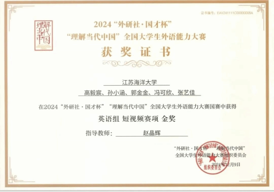 外研社·国才杯全国大学生外语能力大赛短视频金奖