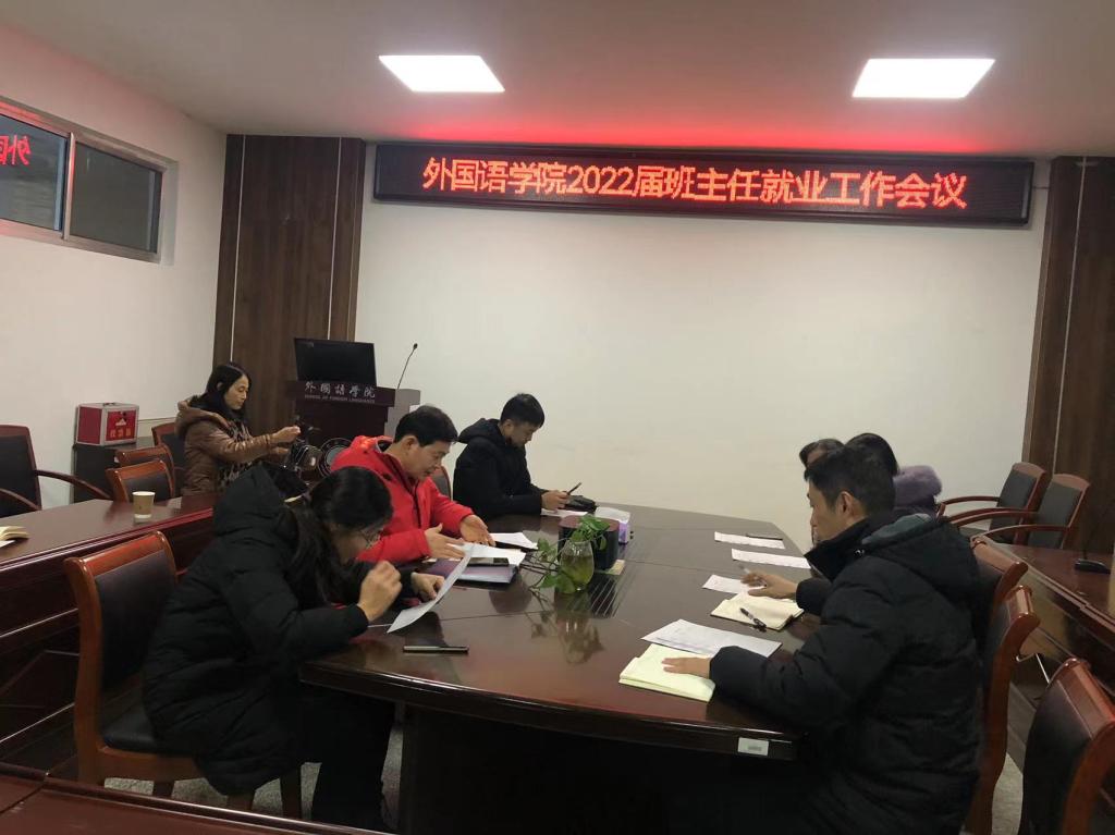 2021年12月27日下午,在文渊楼269会议室,外国语学院召开2022届毕业班就业工作推进会。会议由党委副书记陆文前主持,学院2022届全体毕业班班主任、辅导员参加会议。