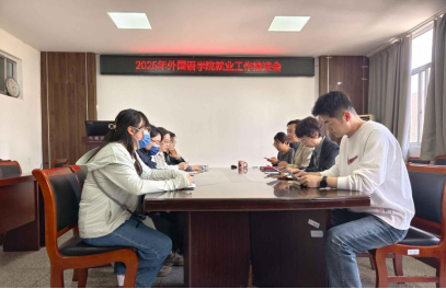 为全面落实学校关于毕业生就业工作的总体要求,进一步推动毕业生就业工作走深走实,4月23日下午,外国语学院在文渊楼269会议室召开2025届毕业生就业工作推进会,深入分析当前就业形势,部署下一阶段就业重点工作。学院院长赵晶辉、党委副书记陆文前出席会议,分管就业工作辅导员李靖、毕业班班主任参会。会议由陆文前主持。
