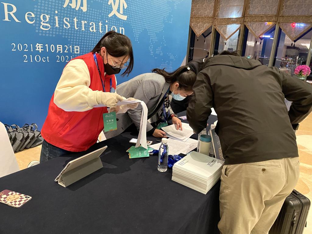 10月21日上午8时30分,会议正式开始。志愿者们各司其职,一对一服务组的同学们负责带领各位参会的外籍大使、驻中国外交官等准时参加会议;会场会务组的志愿者们在会场门口负责发放座位表、防疫物资等。会议当天志愿者们认真负责,确保随时为与会的外籍领导做好翻译和引导工作。会议于当天下午17时30分圆满结束。