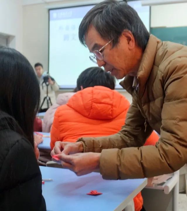 活动开始,主讲人林田诚二老师自中国造纸术的发明与传播开始,带领同学们简单回顾了日本折纸艺术的历史。从传统到前卫,从古典到现代,同学们初步了解了日本折纸艺术的前世今生。他用一件件精美的艺术品,让同学们感受到了折纸艺术的魅力所在,也激发了同学们亲自尝试的兴趣。